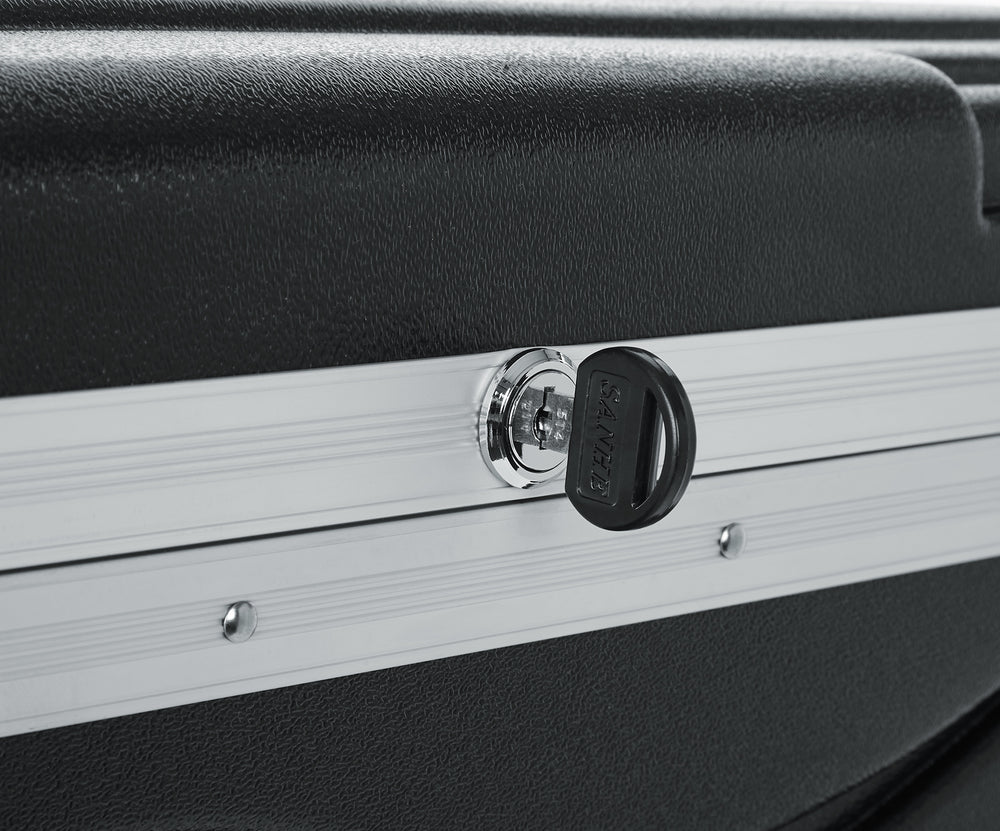 This 10-unit rolling ATA-style rack features lightweight polyethylene construction; threaded field-replaceable 7mm zinc plated steel rack rails (front and rear); locking lids; heavy-duty twist latches, and comfortable recessed side handles. A rugged pull-out handle and inline recessed wheels allow for easy transport. Heat treated 10/32 bolts with protective washers are included.