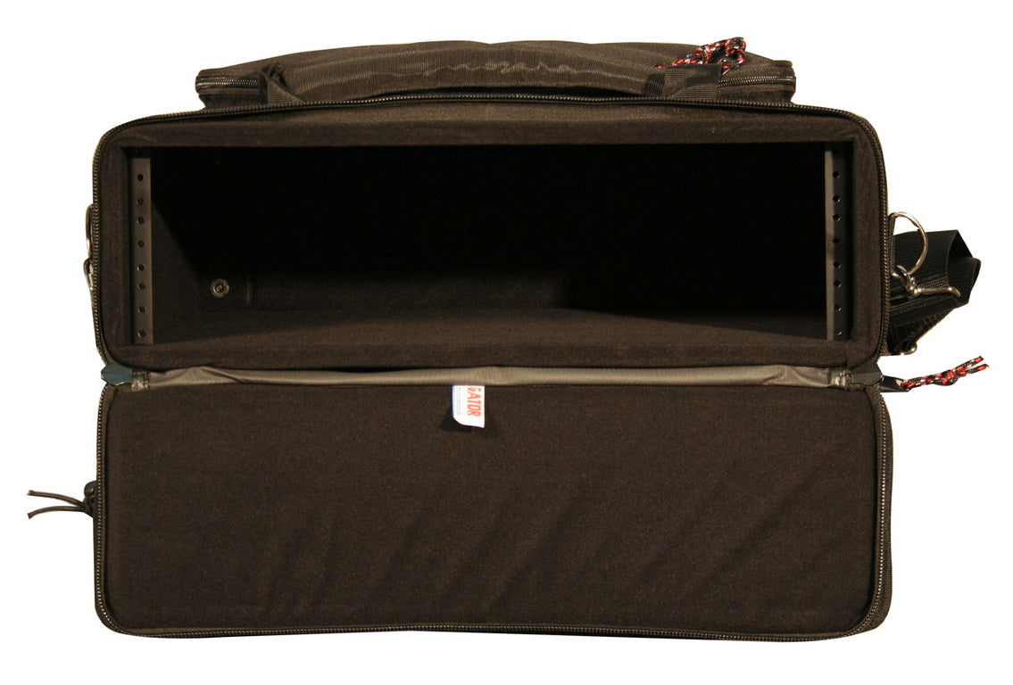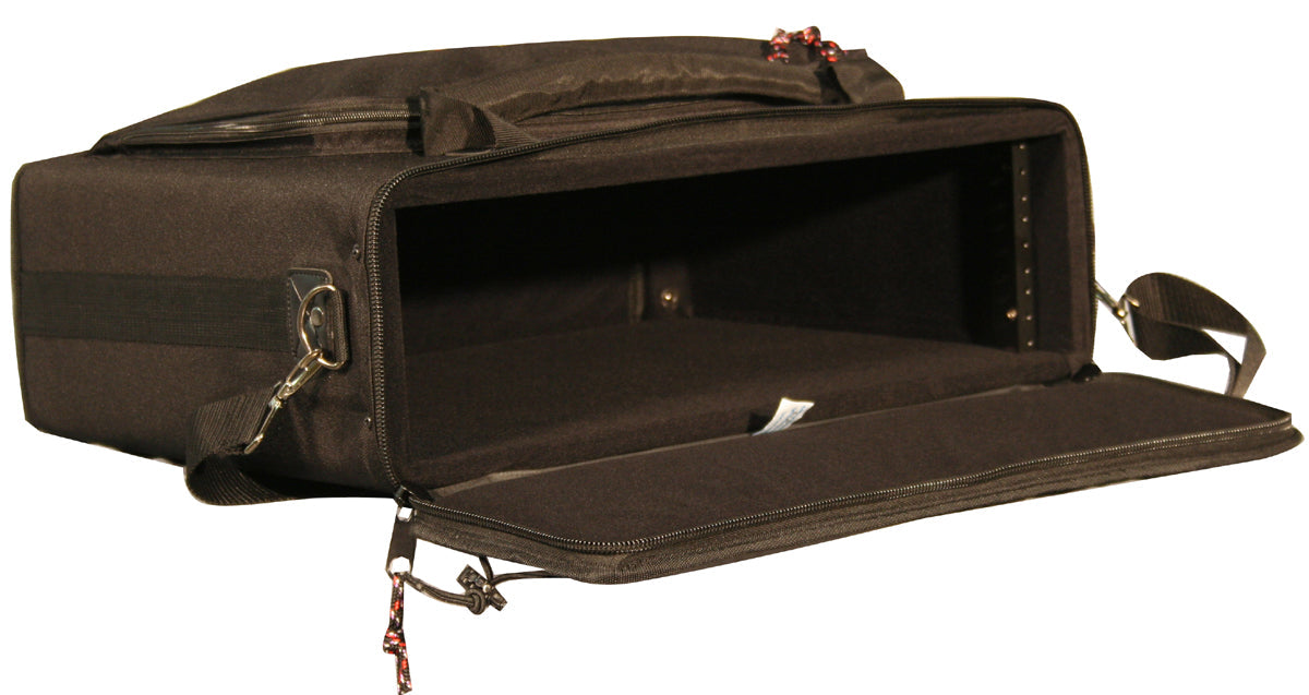 This lightweight, rigid rolling 3-space rack bag is great for effects processors, recording equipment and sound modules. It features a 600 Denier nylon exterior with a polyethylene-reinforced interior frame. It also has an internal reinforced aluminum valance; threaded field-replaceable rack rails; an exterior pocket for cables and other ancillary items. Available with retractable, removable handle with wheels for easy transport.