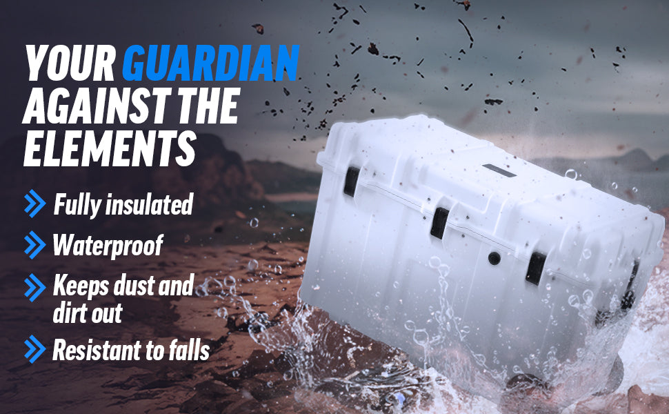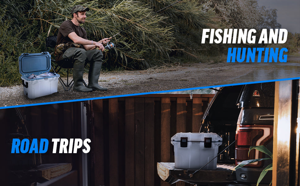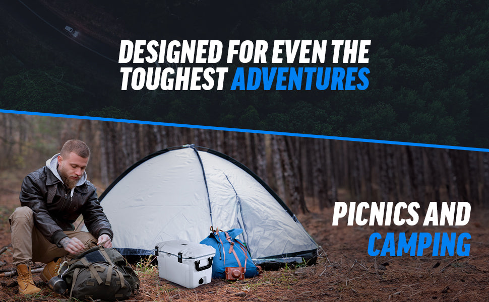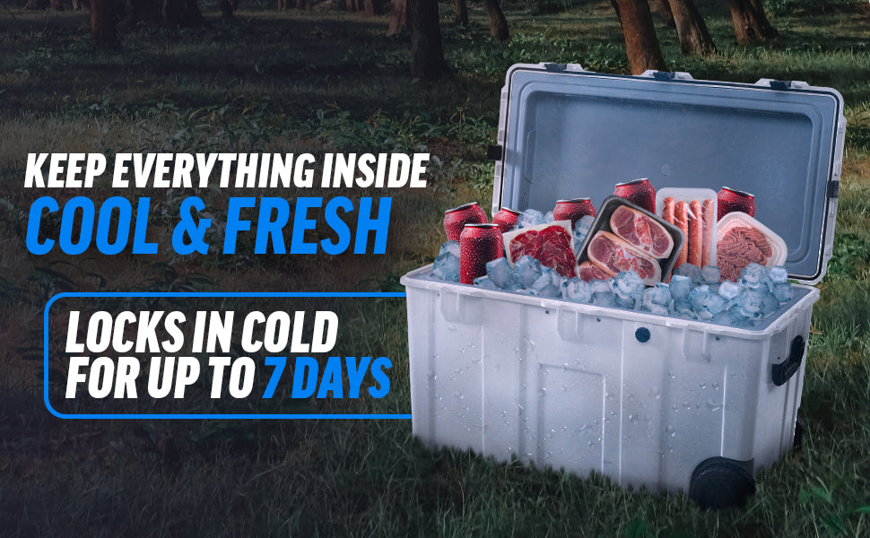 Carrying is a breeze with its swing-up handle, and maintenance is effortless thanks to the rapid flow drain spout. Ideal for camping, hunting, and more, this cooler also boasts UV protection, a lockable lid, and a comprehensive warranty for your peace of mind.