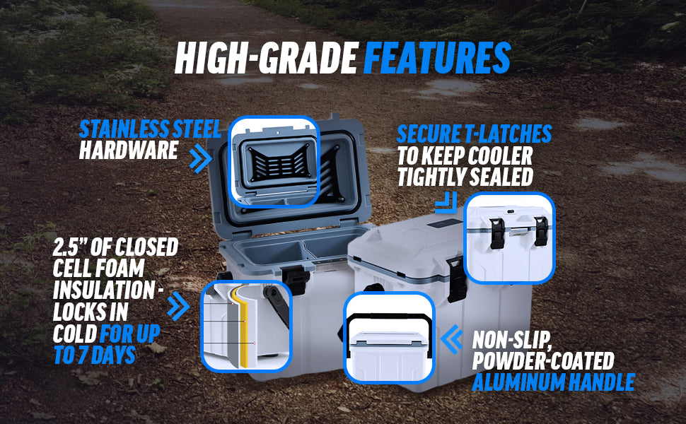 The BluBox 16-QT Hard Cooler is a compact, high-efficiency cooling solution designed for the adventurer in you. With a 16-quart capacity, it can chill up to 15 cans using a 2:1 ice-to-can ratio.