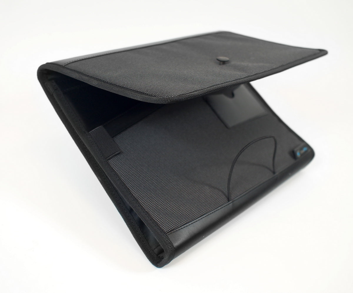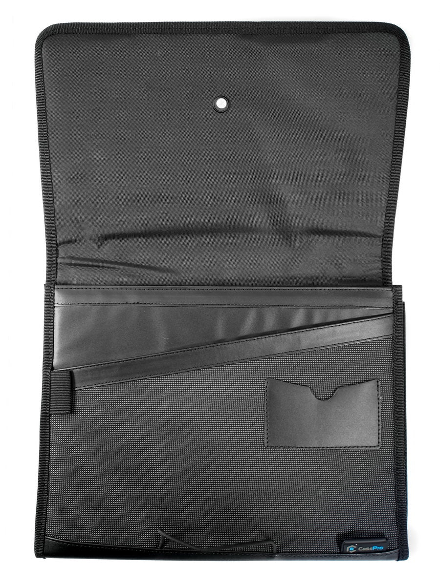 Black Premium Expandable Padded File Folder, Letter Sized with two Pockets. Compact and light weight design, water and tear resistant, padded canvas material to keep your documents safe. Includes a Pen Loop, 2 Expandable File Folders, Business Card Pockets, and an Elastic Cord Closure for conveniently securing contents. 13'' x 10.25'' x 1.75'' inches Premium File Folder Handy file folder for home, office ,travelers ,students ,business trips