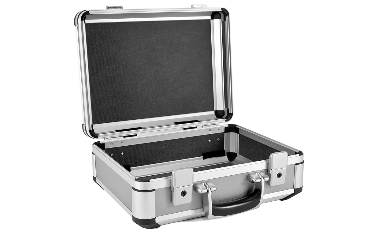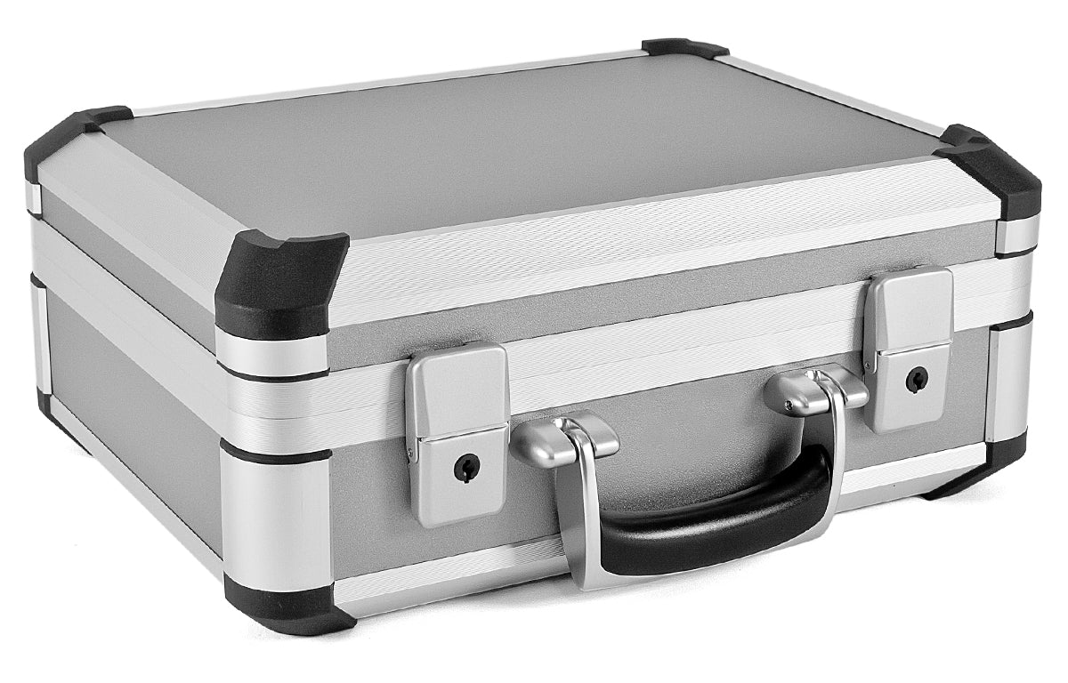 The Select line of industrial aluminum cases takes aluminum design to a higher level. The Exclusive Cases series is high quality, multi-purpose and elegant. The anodized surfaces and high-quality laminated outer shell make for a harmonic and appealing design. Exclusives aluminum frame is very stable despite being so light, offering easy carrying through its ergonomically upholstered handle. The Exclusive features an angular extrusion and handle. These award-winning aluminum cases feature a highbrow appearance for statement-making presentations; the surfaces can be covered with a variety of materials, from leather to decorative foil and other textiles, to best illustrate your aesthetic or corporate vision. Sturdy locks and hinges round out the features for added stability and security.