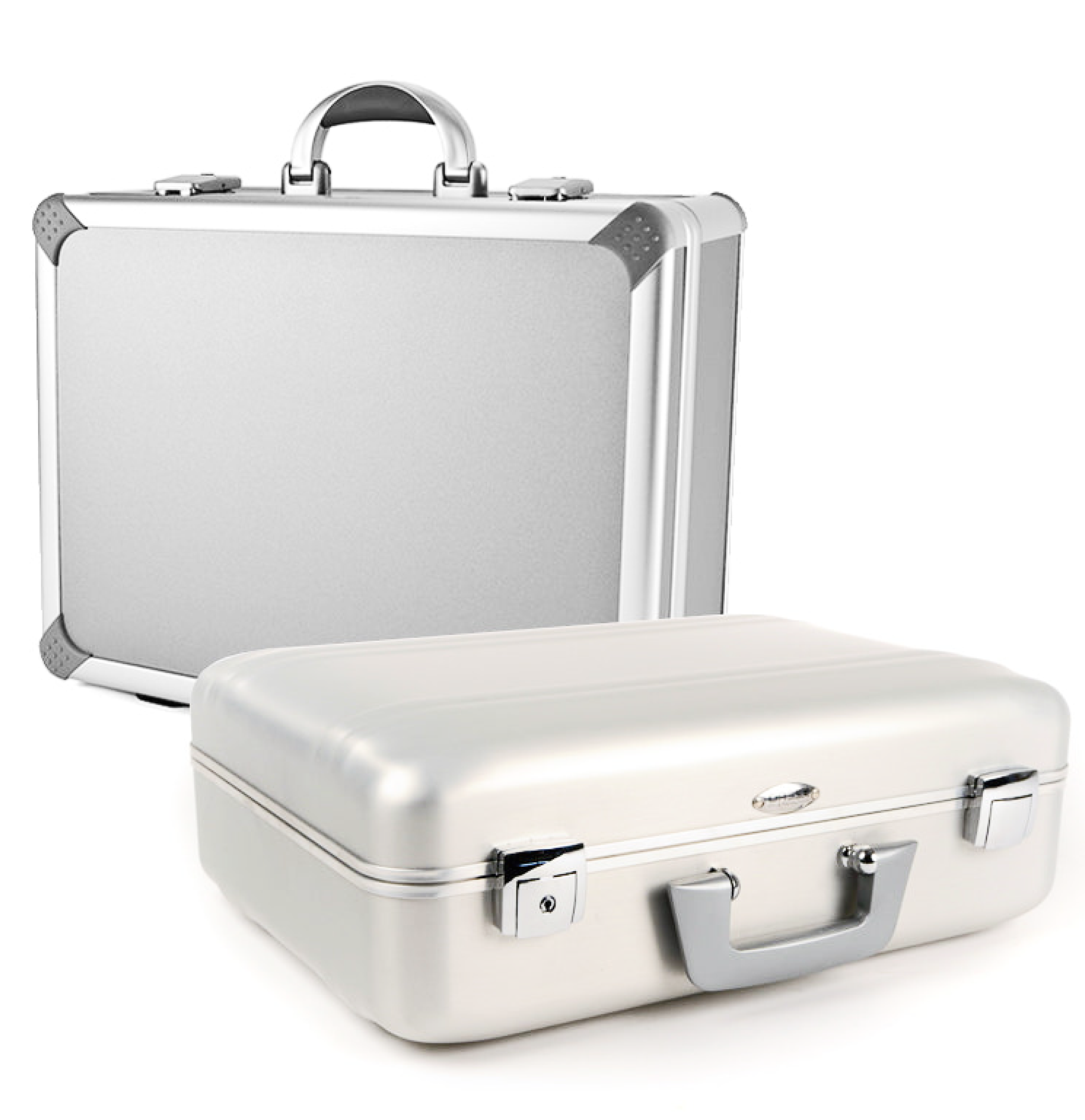 The Select line of industrial aluminum cases takes aluminum design to a higher level. The Exclusive Cases series is high quality, multi-purpose and elegant. The anodized surfaces and high-quality laminated outer shell make for a harmonic and appealing design. Exclusives aluminum frame is very stable despite being so light, offering easy carrying through its ergonomically upholstered handle. The Exclusive features an angular extrusion and handle. These award-winning aluminum cases feature a highbrow appearance for statement-making presentations; the surfaces can be covered with a variety of materials, from leather to decorative foil and other textiles, to best illustrate your aesthetic or corporate vision. Sturdy locks and hinges round out the features for added stability and security.