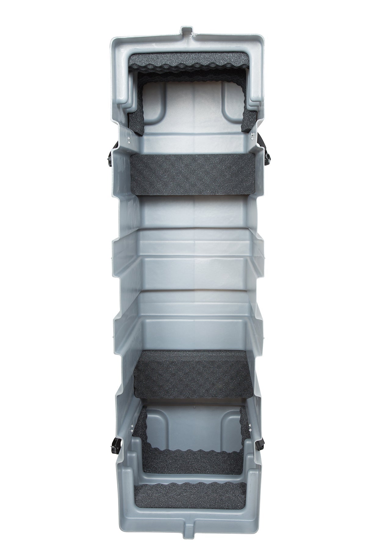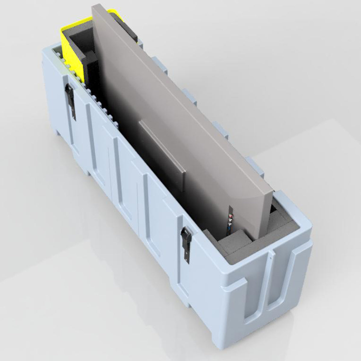 This monitor shipping case is constructed of roto-molded polyethylene. This monitor shipping case fits most 32" to 50" flat screen televisions / monitors and accommodates 1 monitor. The adjustable insert allows you to self-configure the interior length based on your specific monitor size. All you need to do is lift the plastic insert and slide the monitor into the groove that meets the desired length. This shipping case also includes a bag of loose soft foam blocks to best ensure a tight fit during transit.**Standard color is gray. Please note call for available colors