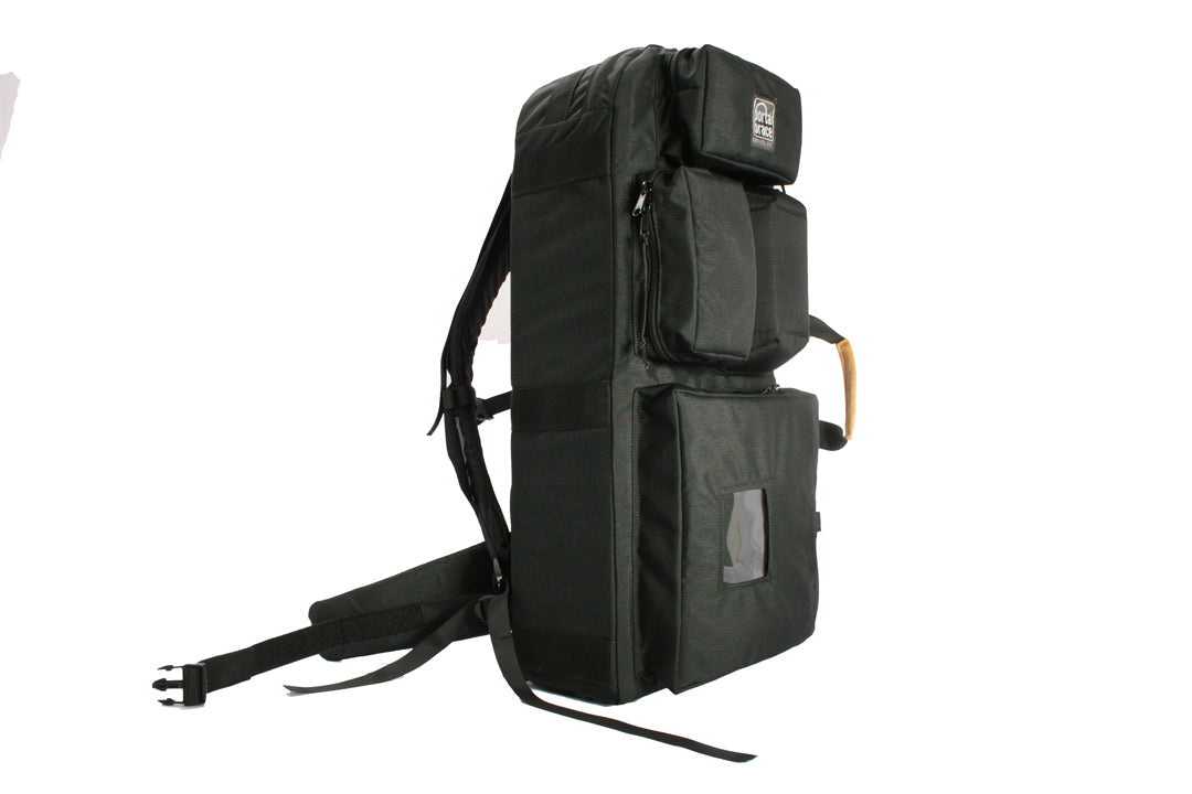 PortaBrace HK-1 Hiker Backpack Camera Case is designed for videographers to protect and carry professional video cameras with battery, lens and accessories. Great for amateur and professional videographers who have to travel long distances or just want to keep their hands free. The case has a plastic frame making it strong yet lightweight. The camera is securely held in place by a tie-down strap and an adjustable shelf. The backpack compartment has pockets for a tripod plate, extra tape and batteries. The backpack can be carried over the shoulder with the optional HB-40 Shoulder Strap. Don't want to carry the case over your shoulder? The shoulder straps, waist belt and pads can be easily removed and stored in a zippered compartment on the back of the case.