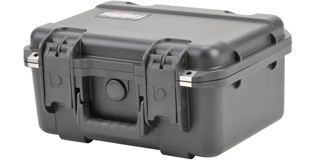 SKB iSeries Injection Molded Mil-Standard Waterproof Cases are molded of ultra high-strength polypropylene copolymer resin, featuring a gasket-sealed, water and dust tight, submersible design (MIL-STD 810G) that is resistant to corrosion and impact damage. Standard features include a molded-in hinge, padlock loops, patented trigger release latches, snap-down rubber over-molded cushion grip handle, automatic ambient pressure equalization valve (MIL-STD 810G), and resistance to UV, solvents, corrosion, fungus and impact damage (MIL-STD 810G).