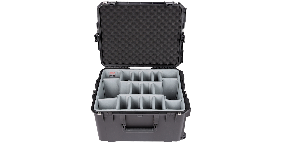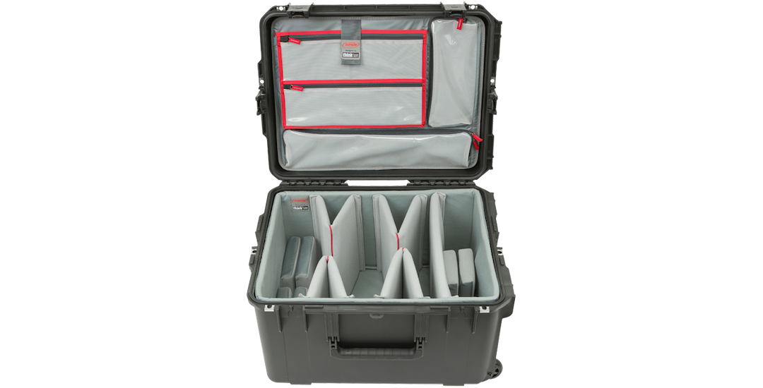 The 3i-2217-12DL is watertight and dustproof, and features a deluxe deep closed cell fitted foam liner, (4) heavy duty hinged dividers, (6) closed cell foam pads, and (1) heavy duty divider, all of which are Nylex-wrapped and designed with heavy duty hook-and-loop tabs to create the perfect fit. This case also features an adhesive-backed hook-and-loop attached lid organizer with laminated clear mesh pockets and a polyester-lined iPad/laptop top-load pocket, built-in wheels, and a convenient pull handle for easy transport.