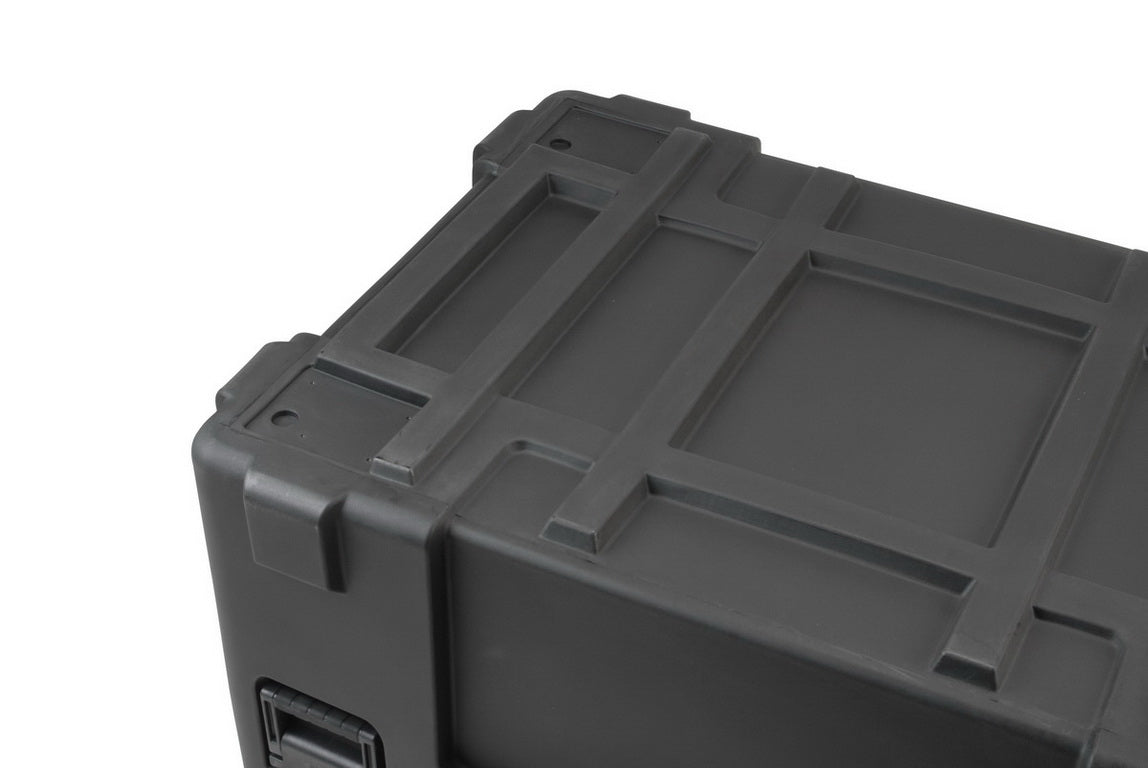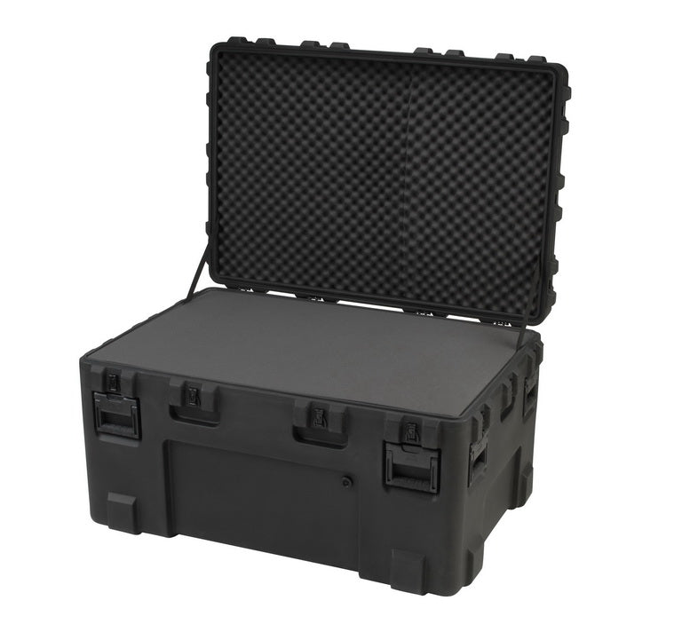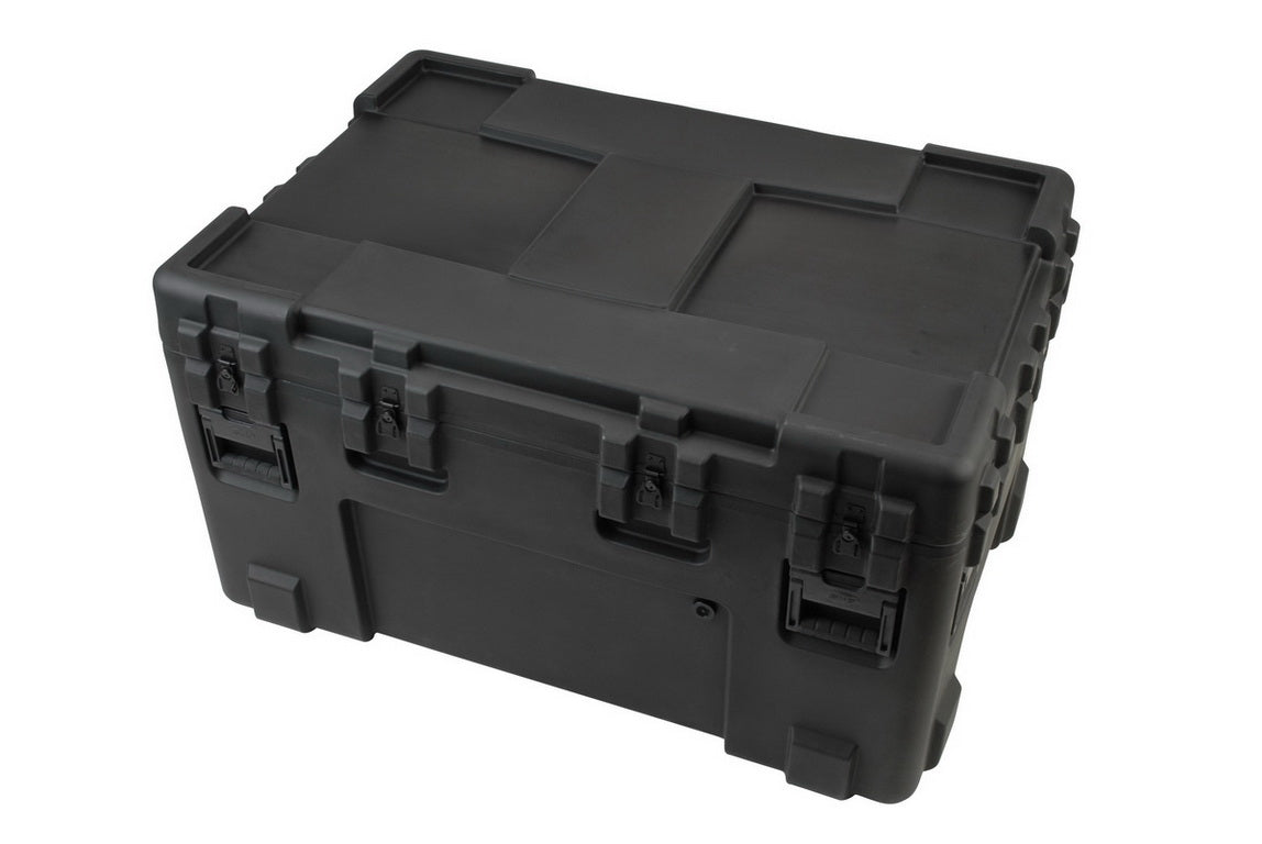 SKB 3R4530-24B Military Cases are roto-molded for strength and are designed to meet stringent MIL-SPECs (MIL-STD 810 and MIL-C-415). Airtight and waterproof, features include: solid stainless-steel latches; strong and durable hinges; deep interlocking stacking posts; a gasket seal and pressure release valve, and spring-loaded handles for portability. They are designed to withstand the most demanding shipping conditions. SKBs rugged 3R Military Cases are available empty or with cubed foam, layered foam or padded dividers. Some models also include a pull handle and wheels. Most models without a built-in pull handle or tow handle accommodate a field installable caster kit which is sold separately. All are covered by SKBs Million Mile Guaranty you break it, SKB replaces it. For free, for life.