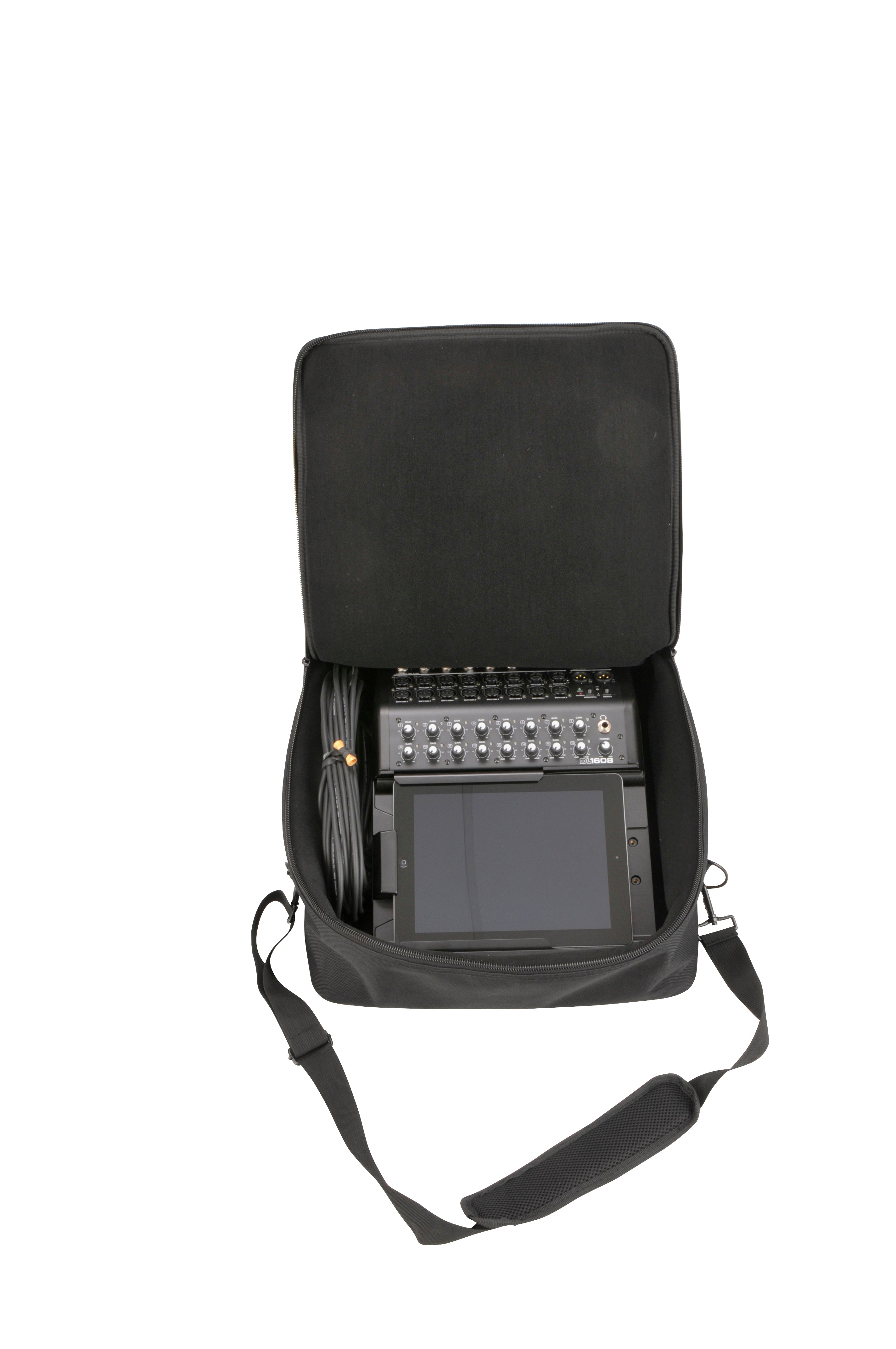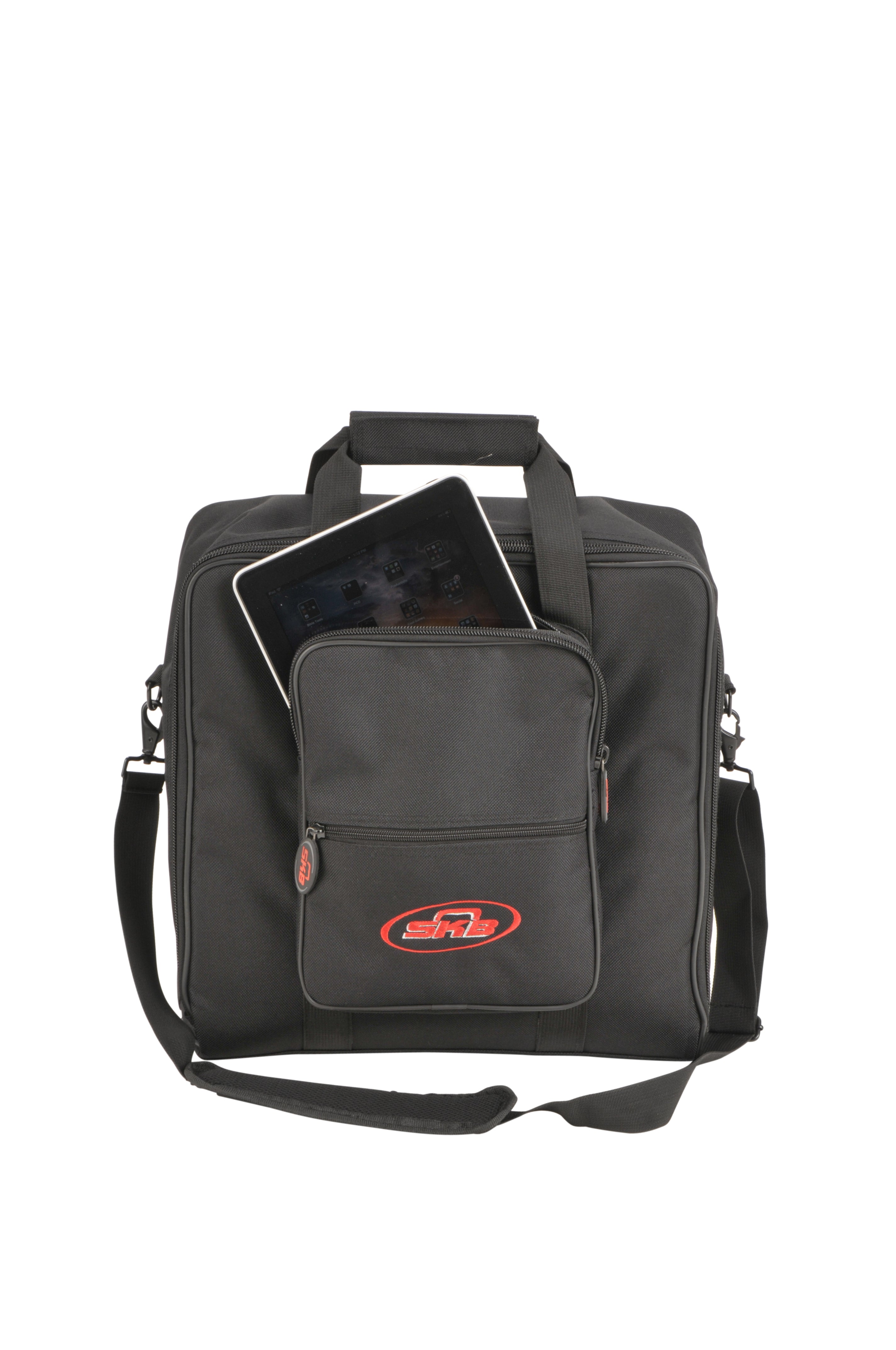 The Universal Mixer/Equipment Bag is constructed of a durable 600 Denier padded exterior with heavy-duty dual zippers, an adjustable, padded shoulder strap and double stitched carrying handle for added convenience. The bag includes a convenient, double zippered padded exterior accessory compartment that is large enough to keep your iPad protected while stowing cables or additional gear.