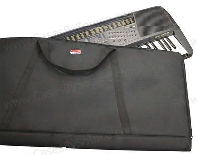 Gator Cases GKBE-49 multi-purpose padded utility/cargo bag features durable nylon construction (600-Denier exterior/190-Denier interior) with 10mm padding. The simple envelope style fits 49-note "Casio"-style keyboards and has zipper closures and nylon web handles for easy portability.
