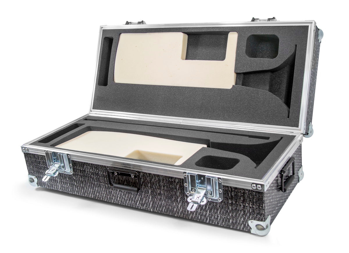 Once your tenor trombone is inside a closed TANK, nothing moves, thanks to two kinds of foam: shock-diffusing and visco-elastic (memory). These two foams help create our system called SIP, or Suspension-in-Place. The TANK allows you to get your trombone from home to the gig safely without worry whether it's via a car, a bus, a plane or a train.