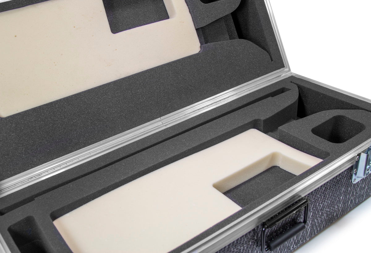 - Suspension in Place Foam Technology. Made of die cut foam and visco-elastic pads ("memory foam") to fit your instrument and eliminate movement.